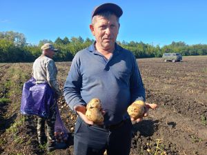 Фермер из деревни Аксу Ильсур Юсупов, занимается выращиванием овощей. В этом году они собрали богатый урожай картофеля четырех сортов, посаженного на 20 гектарах земли.