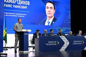 Ранис Камәртдинов Татарстан Рәисе Рөстәм Миңнеханов катнашында Түбән Кама шәһәрендә узган узган эшлекле киңәшмәдә районның сәнәгать һәм эшкәртү өлкәсендәге мөмкинлекләре һәм эш мәйданы белән таныштырды.